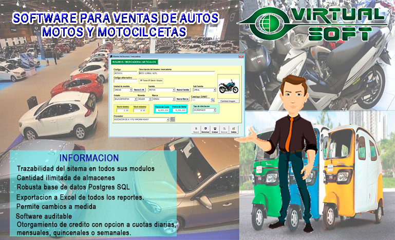 - BDD Postgres SQL bajo la arquitectura cliente-servidor, usted no necesitará comprar licencias SQL Microsoft. - Pueden conectarse a su servidor desde cualquier lugar por medio de Internet sin necesidad de Terminal Server ni VPN. - Podemos realizar modificaciones a medida de cualquier sistema. somos dueños del código fuente. - Todos los reportes se exportan Excel. - Cuentan con capacitación y soporte Pos venta. - Nuestros sistemas cuentan con facturación electronica.